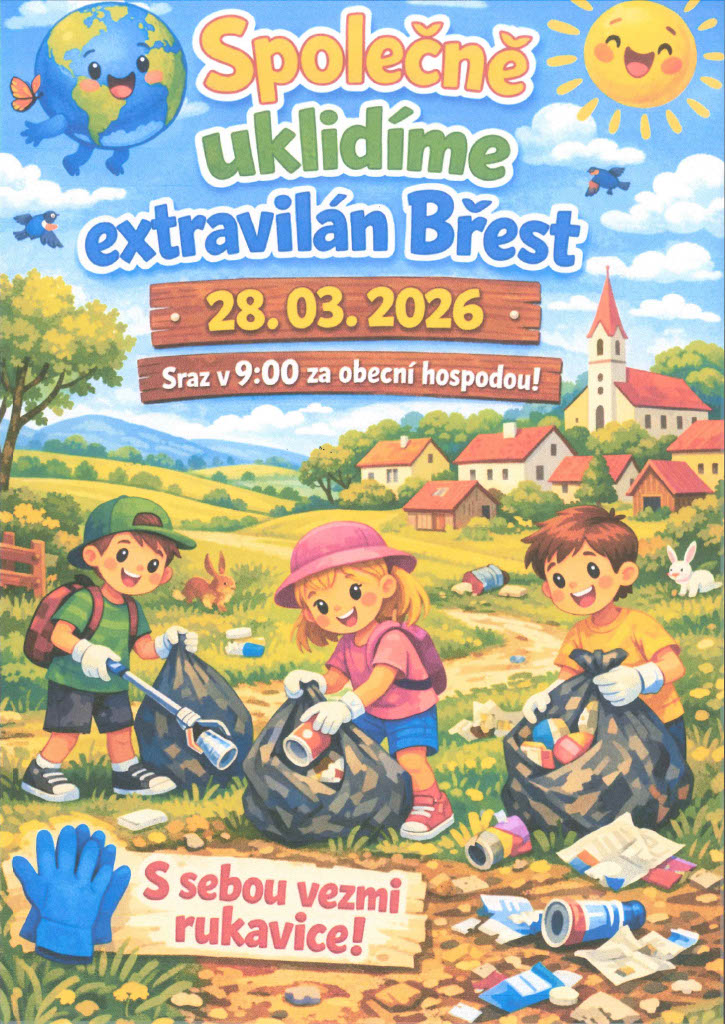 V sobotu dne 28.03.2026. Sraz v 9.00 hod za obecní hospodou. Vezmi sebou rukavice.