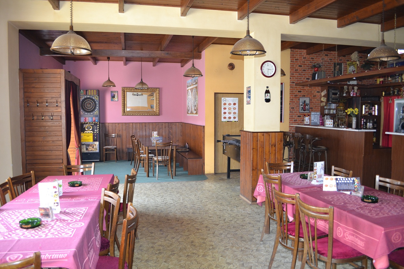 Pořádání akcí, pizza, sázková pobočka Maxi-Tip, projekce sportovních přenosů, stolní fotbálek, šipky, letní zahrádka, stolní tenis, míchané nápoje, wifi připojení.